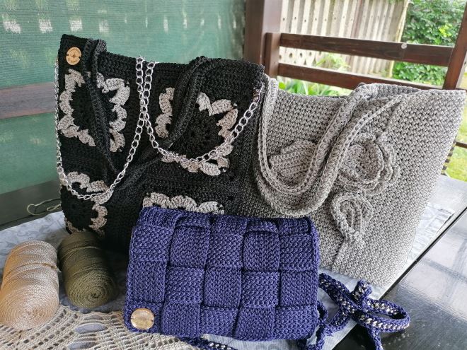 Torbe su došle na red prije tek četiri mjeseca. – Još sam friška u tome, još učim – kaže Dijana. No, to se ne bi reklo, jer njezine torbe su prava modna poslastica. Raznim boja i dimenzija, čvrste i u potpunosti funkcionalne, njene torbe očaravaju, jer su unikatne, i itekako kvalitetne. Da bi naheklala jednu torbu, potrebna su joj, kaže, tri dana. Svaki dan po pari sati.