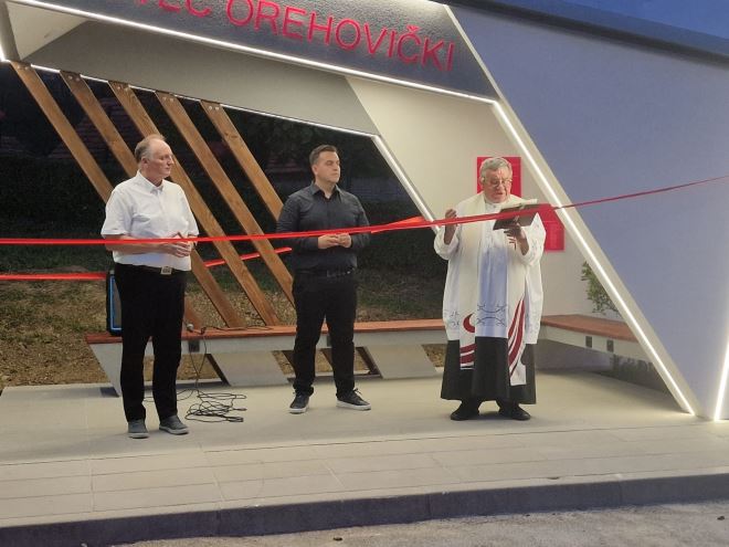Ovu jedinstvenu autobusnu stanicu blagoslovio je župnik vlč. Josip Ban, a simboličnim presijecanjem vrpce otvorio kum i idejni začetnik čitavog projekta arhitekt Mario Kvež, koji je ujedno bivši učenik škole.