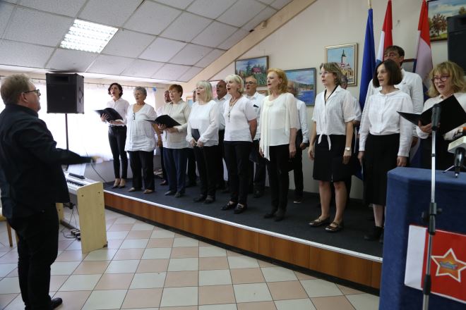 Župan Kolar pozdravio je okupljene pozdravom 'Drugarice i drugovi, zdravo!', na kojeg su mu sudionici akademije zdušno odgovorili 'Zdravo' te mu zapljeskali