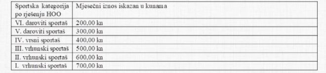 Pravilnikom se predviđa sljedeći mjesečni iznos sportske stipendije za sportaše sa prebivalištem na području Općine Bedekovčina: