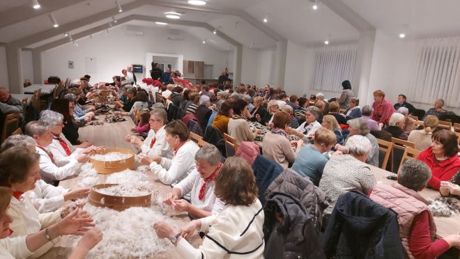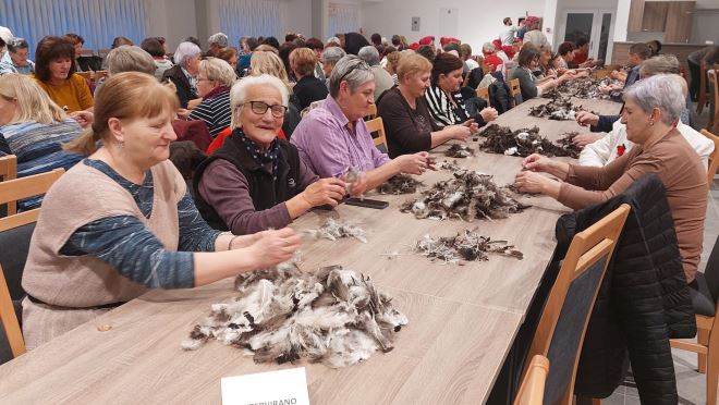 Brojne sudionice prisjetile su se tako ovog običaja koji se nekad provodio u brojnim zagorskim kućama. Kratile su se tako duge zimske večeri, ali ujedno i obavljao vrlo važan posao, pogotovo u onim kućama koje su imale cure za udaju, a kojima je kao dio miraza trebalo pripremiti jastuke i poplune od perja.