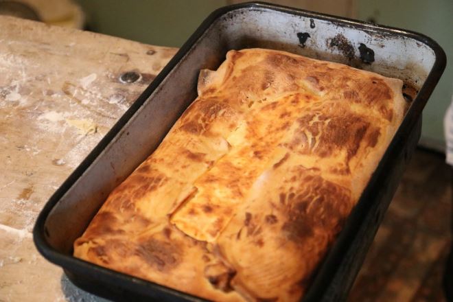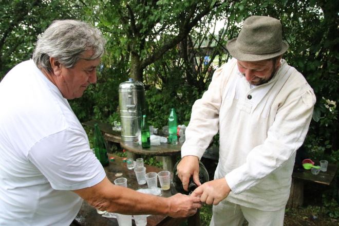 A u jednoj starinskoj hiži Prigorčan Darko Židak koji je došao iz Vugrovca bio je vrlo vrijedan. Pekao je domaće mlince i strepu, koju smo, naravno i kušali. Jako fino. Članice KUD-a Belec pokazivale su kako se nekada faldala narodna nošnja, otkrivši da one gospođe koje su bile imućnije i više držale do sebe, svoje su nošnje faldale što sitnije. Muški dio Udruge, pekao je rakiju i pravio jabučnicu. - Pekla se rakija od 'ruški'. Skuhali smo 8 litara. Ljudi su vam nekada kuhali rakiju šljivovicu, rakiju od ruške, drožđenku… Prije nisu imeli toliko piti pa su morali pripremati pijaču. Drožđenka se koristila za masiranje. Ak nije pomogla izvana, možda je iznutra – našalio se Darko Posavec. Jabučnica se pripremala od pravih domaćih jabuka 'jačmenki'. Osim za pijaču, proizvodio se i jabučni ocat.