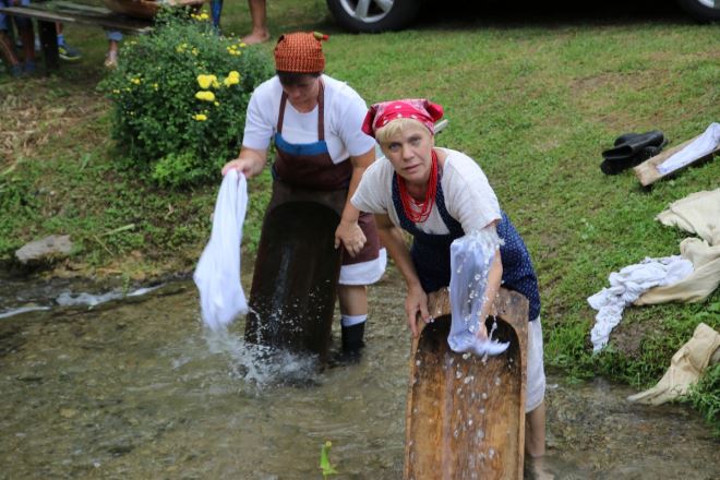 Marica Černi iz Novog Marofa kuhala je domaći sapun koji se izrađuje, prezentirala nam je, od svinjske masnoće, kosti i čiste vode. To se kuha satima dok se ne napravi smjesa koja se onda razlije u kalup i poslije izreže. Tim domaćim sapunom prao se veš na potoku. A, simpatična pralja na potoku bila je Ivka Jakopović, koja je pokazivala posjetitelja kako se prao veš dok nije bilo, kaže, Faksa i Ariela. – Ljudi su vam se prije mučili, ali su bili puno zadovoljnejši. Negda nas je znao biti puni potok, a jedna je drugoj pomagala. Ljeti je to puno lakše, zimi nije bilo lagano. Žureli smo se doma i hukali prste, a kad smo došli doma porinuli smo ih u rolu – ispričala je Ivka. Njezina kolegica iz Udruge Gotali Vesna Gaberšekje pokazivala kako se izbjeljivao veš prije nego se s njim išlo na potok. – Zavrela se voda u koju se veš stavio pariti i posipao pepelom. Da samo znate kak je veš bil čisti – otkrila je Vesna.