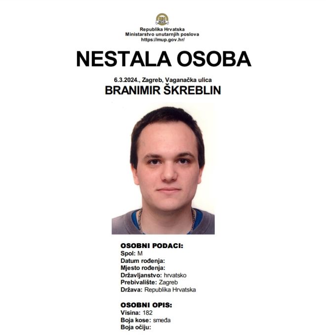 Na koncu, jučer, u srijedu 6. ožujka, iz Vanganačke ulice u Zagrebu nestao je Branimir Škreblin.