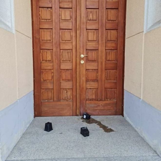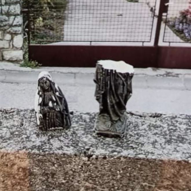 [EKSKLUZIVNE FOTOGRAFIJE] Sotonistički čin ispred Crkve na zagrebačkim Šestinama u kojoj je župnik iz Zaboka : „Zgroženi smo. Križ je okrenut naopako, pomokrili su se ispred crkve, slomljen je kip Blažene Djevice Marije...“