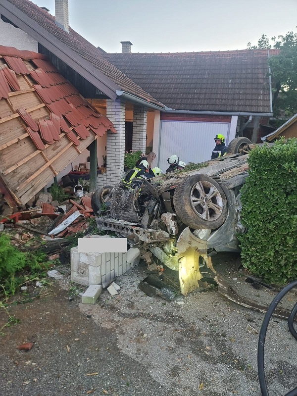 Pri tom je totalno uništio nadstrešnicu kuće, ali i vozilo, tako da su ga iz auta morali izvlačiti vatrogasci.