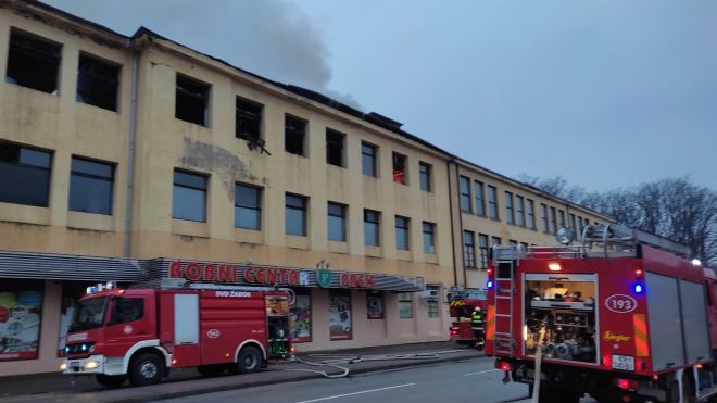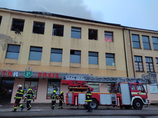 Još uvijek traje gašenje požara koji je sinoć nešto prije 22 sata buknuo na krovištu objekta trgovine 'Super preis', bivšeg 'Oro-teksa'.