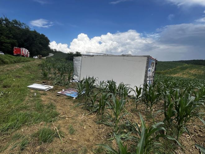 FOTO: Kamion sletio s ceste. Vatrogasci i Hitna izvlačili unesrećenog