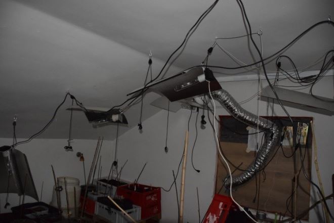 Jučer, 25. siječnja 2022. godine, pretragom obiteljske kuće vlasništvo osumnjičenog su pronađene dvije posebno prerađene prostorije u kojima su s uređajima za osvjetljavanje, filtriranje i protok zraka stvoreni uvjeti za umjetni uzgoj bilja u kojima je pronađeno zasađeno ukupno 134 komada stabljika marihuane visine do 155 cm, zatim 1494,0 grama marihuane pakirano u šest različitih paketa, 518,0 grama lišća i granja marihuane, jedna ručno motana cigareta ispunjena smjesom duhana i marihuane te dvije digitalne vage za precizno mjerenje mase s tragovima droge.