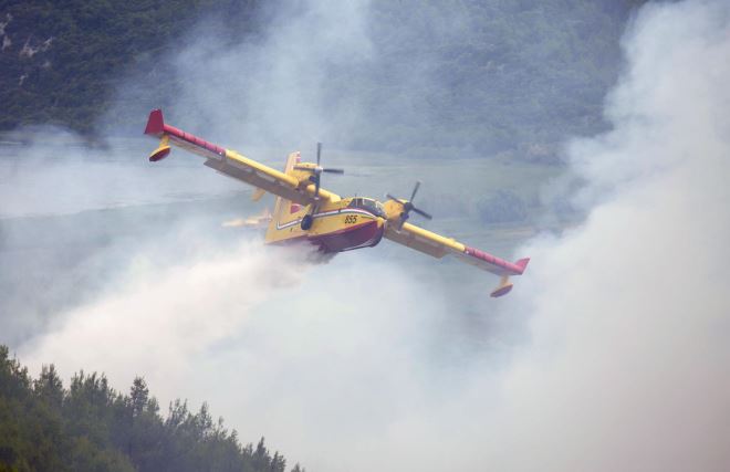 Požar koji je zahvatio gustu borovu šumu gase i tri kanadera.
