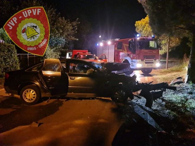 Automobil je udario u postolje rasvjetnog stupa, od kojeg se odbio i udario u stablo, a potom je odbačen na kolnik.