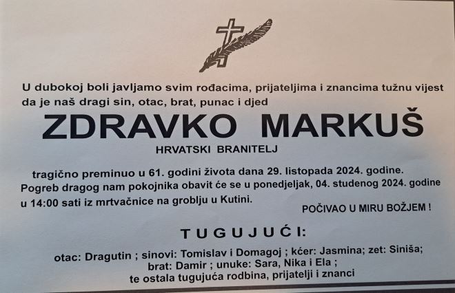 Brojne hrvatske branitelje jučer je pokosila vijest o tragičnoj smrti hrvatskog branitelja Zdravka Markuša koji je nastradao na pruzi u Kutini, piše Dnevno.hr. Njegov brat, poznati pripadnik HOS-a, Damir Markuš, jučer je kratkom objavom o Zdravkvoj smrti svoje brojne pratitelje bacio u nevjericu: