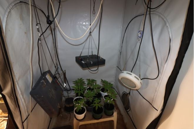 Policijski službenici su obavili pretragu stana na Trešnjevci te su pronašli više komada lampi, ventilacijskih crijeva, ventilatora, uređaja za mjerenje vlaga i temperature, ovlaživača zraka, metalne škare, više bočica s raznim tekućinama kao i druge predmete i stvari koje su služile kao improvizirani laboratorij za uzgoj konoplje tipa droga. Također je pronađeno 15 teglica sa zasađenim sadnicama konoplje tipa droga, osam biljaka konoplje tipa droga visine oko 55 cm s korijenom, više plastičnih vrećica i staklenih posuda u kojima se nalazilo ukupno 143,5 grama konoplje tipa droga.