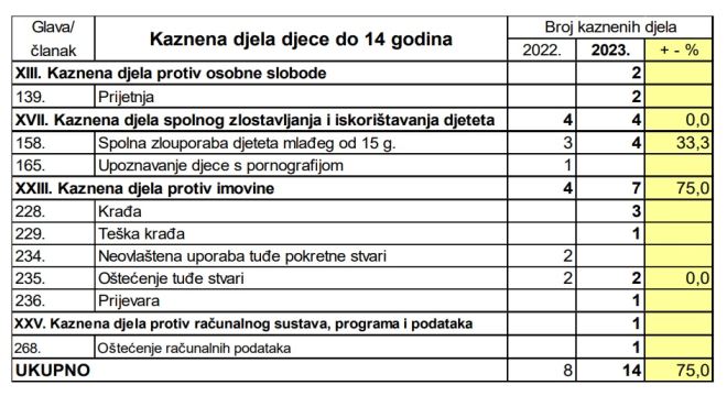 Zanimljivo je također spomenuti da je tih 14 kaznenih djela počinilo osmero djece mlađe od 14 godina, što znači da su se neki od njih o Kazneni zakon ogriješili više puta.