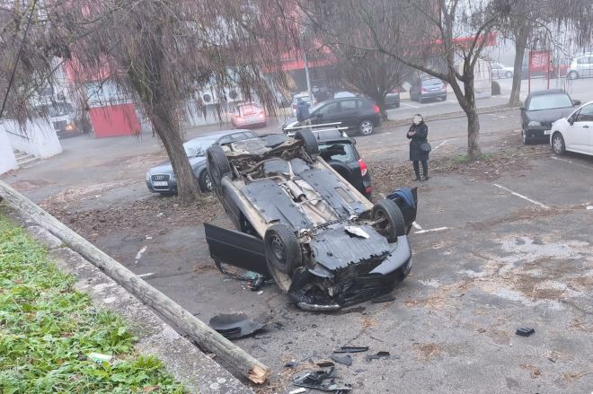 Automobil je završio je na krovu, ali je vozač sam izašao iz automobila i prema izjavama svjedoka, nije pretrpio teže ozljede.