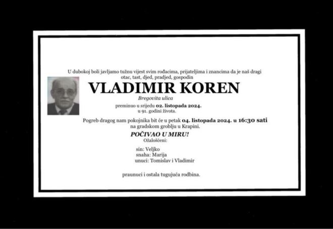 S velikom tugom obavještavamo vas da nas je napustio naš osnivač i dugogodišnji član gospodin Vladimir Koren, stoji u objavi DVD-a Petrovsko.