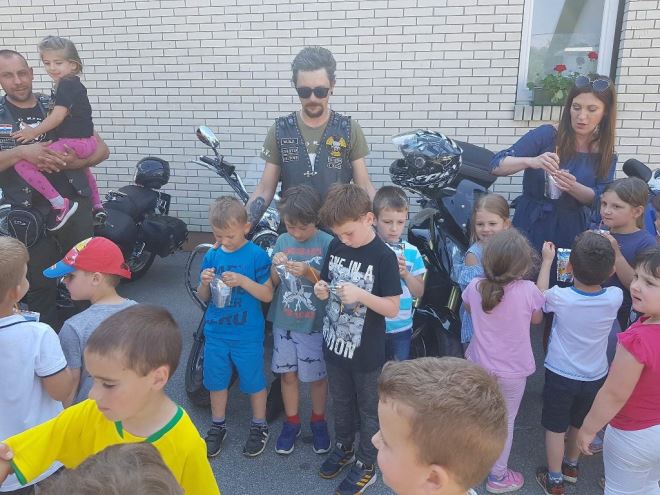 Polaznike Dječjeg vrtića 'Uzdanica' u Zlataru u četvrtak su razveselili članovi zlatarske Udruge MK Wild Riders donacijom igračaka. - Svrha posjete vrtiću bila je oraspoložiti mališane igračkama, pokazati im naše motocikle te u druženju s djecom suzbiti negativne predrasude kako 'bikeri' pokazuju samo loše primjere – poručili su iz udruge. MK Wild Riders prema planu i programu zacrtanih ciljeva za 2018. godinu provodi humanitarne akcije za osobe s invaliditetom, djecu s posebnim potrebama, ustanove za njegu, odgoj i zaštitu djece predškolske dobi.
