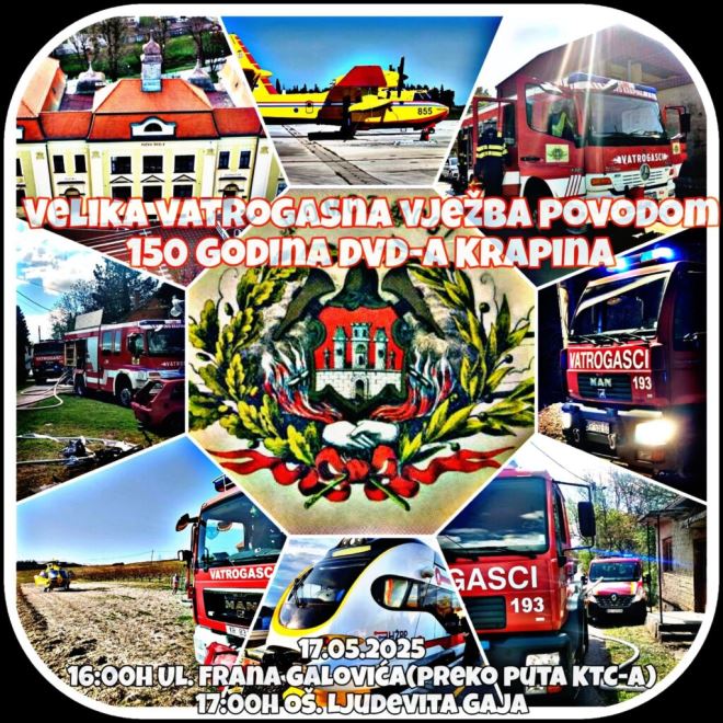Dobrovoljno vatrogasno društvo Krapina obilježava 150. obljetnicu svog osnutka velikom međunarodnom vatrogasnom vježbom koja će se održati u subotu, 17. svibnja 2025. godine na području grada Krapine.
