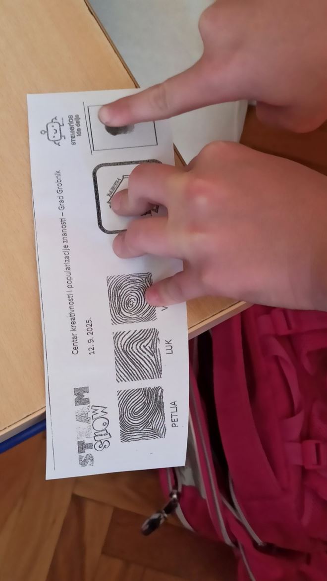 Prvi su se u istraživačku avanturu upustili učenici 4. razreda koji su 28. listopada, u sklopu projekta STEMerica, prisustvovali radionici kriptografije koju je održao prof. Krešimir Čanić. Pretvorivši se u male forenzičare, učenici su istraživali tajne otisaka prstiju, promatrali linije pod lupom, razvrstavali uzorke i otkrivali kako na svijetu ne postoje dvije osobe s istim otiskom. Osim što su se zabavili, naučili su kako se znanstveni pristup može primijeniti i u svakodnevnim životnim situacijama. Paralelno s tim, članovi školske grupe „Mislići“, također učenici 4. razreda, razvijali su kreativno i kritičko mišljenje kroz izvođenje jednostavnih pokusa i istraživanja. Kroz promatranje, postavljanje pitanja i zaključivanje približili su se znanstvenom načinu razmišljanja.