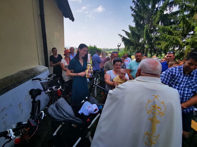 Misno slavlje pjevanjem je uveličao zbor mladih župe sv. Jelene Križarice. Po završetku misnog slavlja uslijedio je blagoslov djece od onih najmanjih pa do onih najvećih, cvijeća, bicikala i dječjih kolica. Nakon toga upriličeno je druženje ispred kapelice uz prigodni domjenak i osvježavajuća pića zahvaljujući mještanima i župniku.