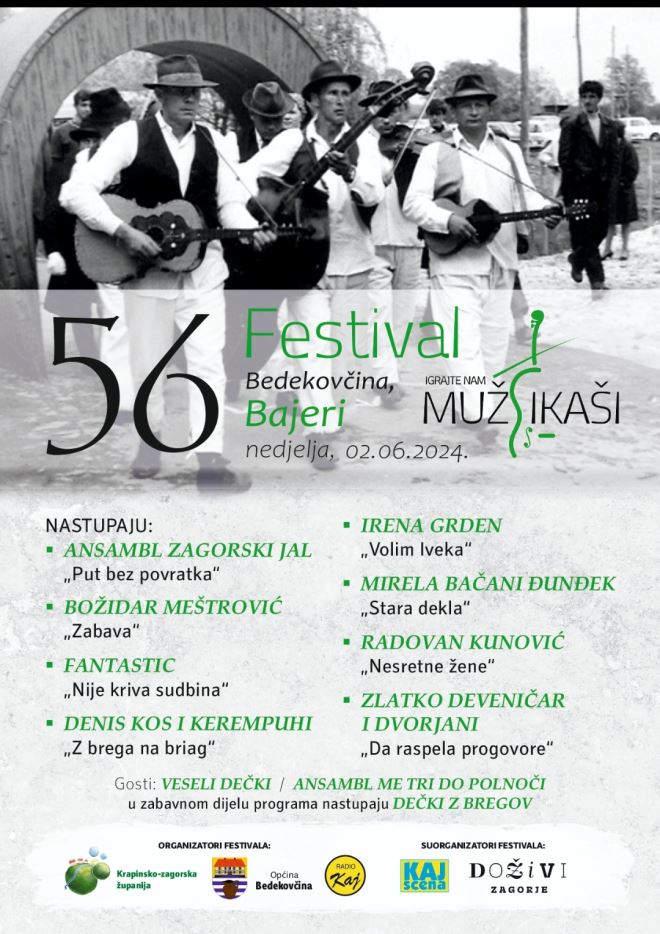 Festival ''Igrajte nam mužikaši'' koji nam je dao neke od najljepših zagorskih evergreena, poput "Veselo, veselo zagorci" i "Zagorski sam veseljak" ove godine održat će se u svom 56. izdanju.