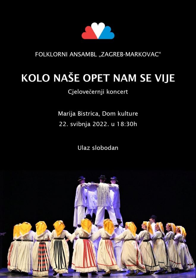 Nakon dvije godine pauze, Folklorni ansambl “Zagreb Markovac” ponovo kreće na svoju standardnu, ljetnu koncertnu sezonu, koju otvara koncertom u Mariji Bistrici, ove nedjelje u Domu kulture s početkom u 18.30 sati. Simboličnim nazivom “Kolo naše opet nam se vije”, želi se naglasiti da je duh amaterizma neuništiv i nepokolebljiv i da se ansambl, unatoč svim nedaćama, vraća svojim korijenima – očuvanju hrvatske baštine i tradicije.