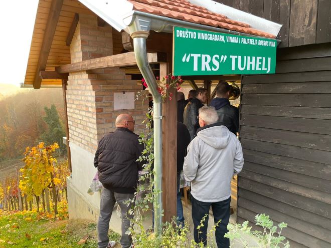 Subotnji domaćin, inače i tajnik Udruge „Trs“ otkriva nam da su tuheljski vinari zadovoljni ovogodišnjom berbom koja nije bila obilna kao prethodne godine, ali zato mlado vino kvalitetom u potpunosti zadovoljava.