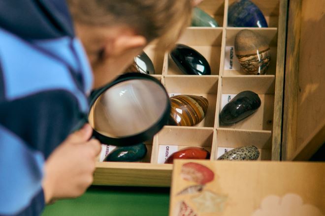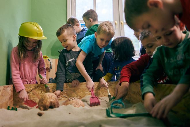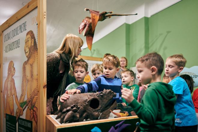 Tako mali posjetitelji izložbe mogu iskopavati replike fosilnih kostura u pješčaniku, primiti u ruke i proučiti originalne minerale, na interaktivan način povezati lubanje s licima naših predaka, zaviriti u kutije i ladice te otkriti različite fosile. Tu su i kosti dinosaura, impresivni 3D modeli prapovijesnog divovskog vretenca i letećeg gmaza i brojni drugi zanimljivi predmeti, a djeci iz krapinskog DV Gustav Krklec ponajviše se svidjela rekonstrukcija špilje u kojoj se mogu opustiti na krznenom naslonjaču i poslušati zvukove prirode kakvi su okruživali neandertalce.
