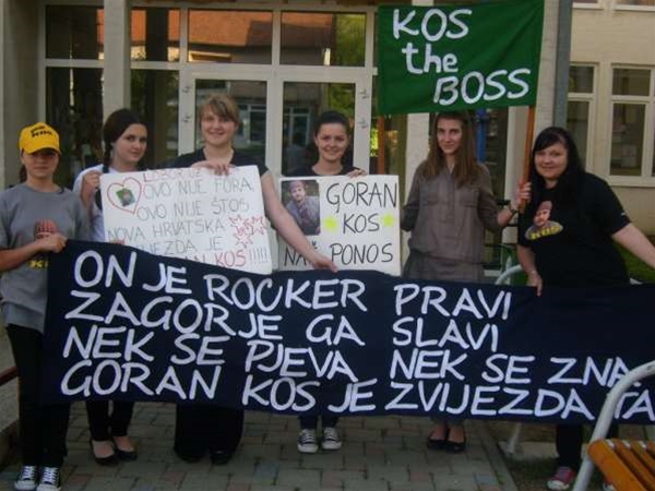 U showu je bio totalno drugačiji od drugih, pa je možda i to presudilo. Imao je Goran u publici u studiju i svoje vatrene navijače. U finalnom showu bilo ih je stotinjak. Loborski kraj s čijih brega potječe, od samog je početka uz njega. U publici u studiju sigurno ste primijetili simpatične i vesele cure s transparentima poput 'Goran Kos naš ponos', 'Nije fora nije štos, pobjednik HTZ-a je Goran Kos', te jedan veliki transparent koji nije mogao proći nezamijećen 'On je rocker pravi, Zagorje ga slavi, nek' se pjeva nek' se zna, Goran Kos je zvijezda ta'. S Goranovim navijačicama iz Petrove Gore, Loborskog Završja i Cebovca, Patriciom, Natalijom, Marinelom, Lidijom, Antonijom i Nikolinom porazgovarali sam par dana nakon showa, taman kada su se emocije malo stišale. Cure su srednjoškolke i studentice. Transparente su pomogle šivati mame, a igrom riječi pozabavile su se cure. Na jednom su tako napisale 'Uči se prilagođavati, ali ostani svoj'. Jedan transparent djevojke su pak Goranu ostavile za poklon.