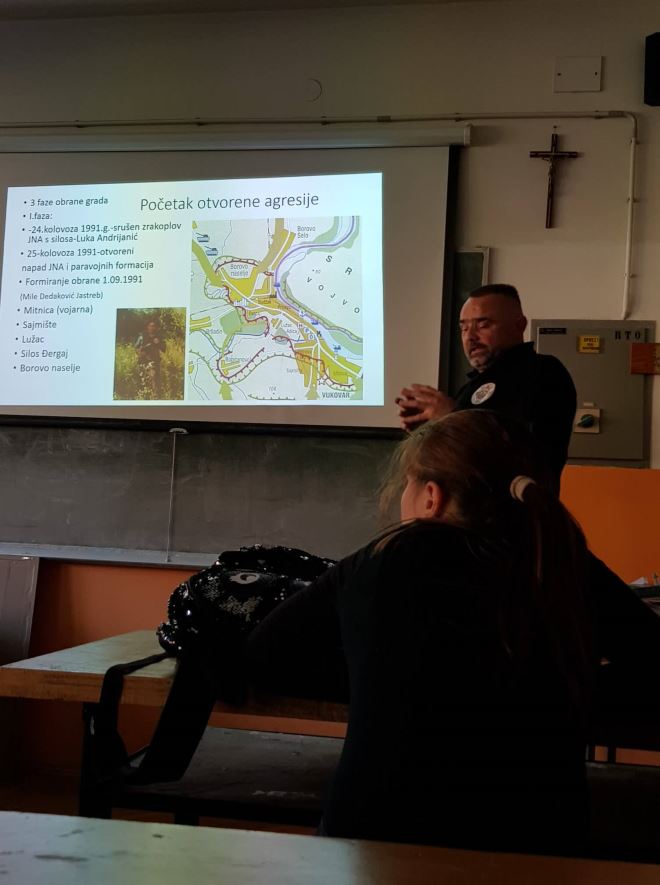 Nakon održanog predavanja, branitelji su uručili prigodni poklon za školu koji je preuzeo ravnatelj škole Krešimir Kralj, nakon toga podijelili su skromne poklone za uspomenu i učenicima. Projekt ide u drugu godinu realizacije pod vodstvom Mladen Ptičara, koji i sam dobrovoljac Domovinskog rata s iskustvom u istočno-slavonskoj bojišnici, a ujedno i srednjoškolski nastavnik.