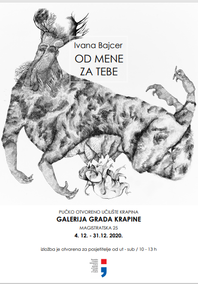 U Galeriji grada Krapine u petak 4. prosinca u 18 sati, uz sve propisane epidemiološke mjere, otvorit će se izložba grafika „Od mene za tebe“ krapinčanke, grafičarke Ivane Bajcer. Otvorenje će se moći pratiti i putem YouTube kanala Pučkog otvorenog učilišta Krapina.