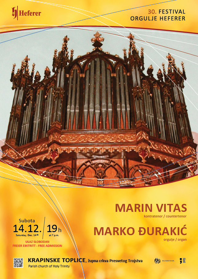 U subotu, 14. prosinca 2024. godine u 19 sati održat će se koncert u župnoj crkvi Presvetog trojstva u Krapinskim Toplicama. Na koncertu će nastupiti kontratenor Marin Vitas te Marko Đurakić na orguljama.