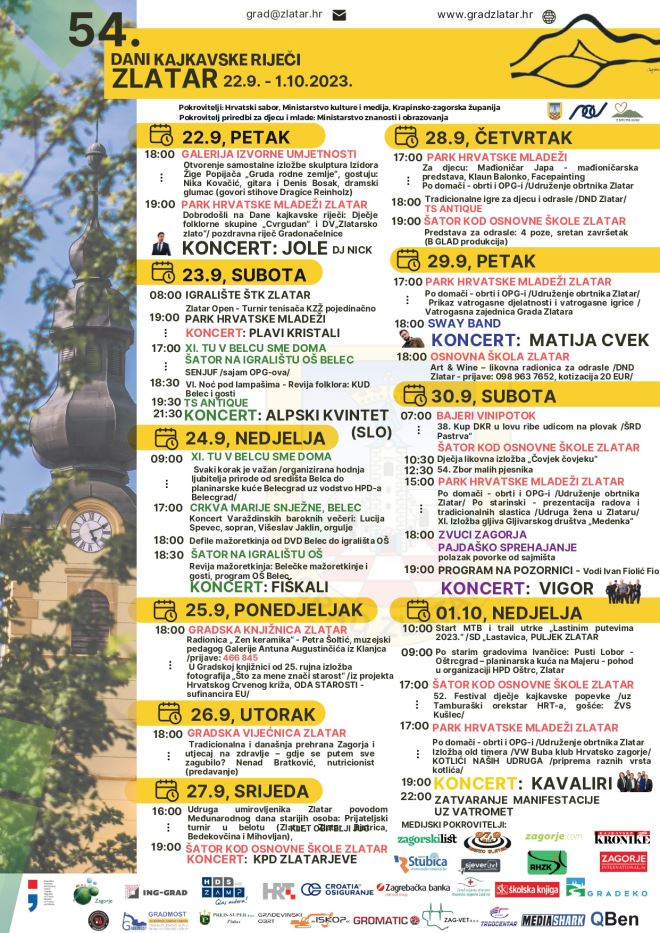 Sam početak 54. Dana kajkavske riječi je 22. rujna, kada se otvara izložba “Gruda rodne zemlje” Žige Popijača u Galeriji izvorne umjetnosta, a potom će u Parku hrvatske mladeži biti upriličeno samo otvorenje manifestacije.