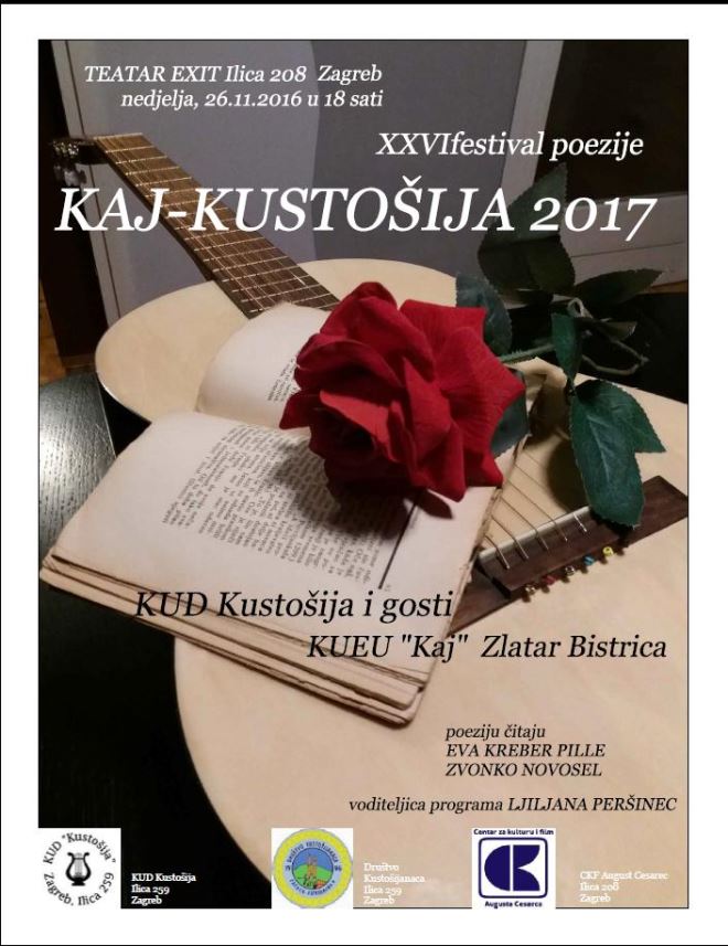 Sutra, u nedjelju, s početkom u 18 sati, u Ilici 208, u Teatru EXIT, održava se XXVI. festival poezije „KAJ-KUSTOŠIJA 2017.“