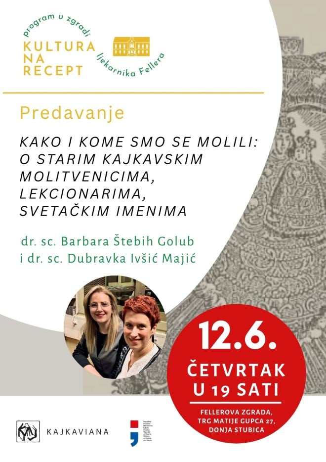 Iz Kajkaviane pozivaju na znanstveno-popularno predavanje pod nazivom ''Kako i kome smo se molili: o starim kajkavskim molitvenicima, lekcionarima, svetačkim imenima'' koje će se održati u četvrtak, 12. lipnja 2025. u 19 sati, u prostorima Kajkaviane, u Fellerovoj zgradi u Donjoj Stubici.