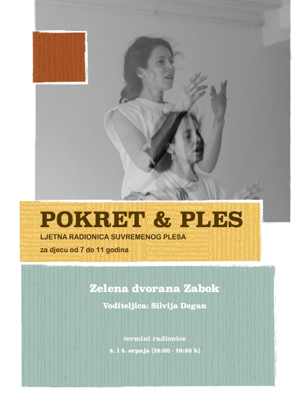 Pozivaju se roditelje ili polaznici da se prijave putem obrasca na radionicu POKRET I PLES koja će se održati tijekom ljetnih praznika, 4. i 5. srpnja 2024. (18:00 - 19:30 h) u Zelenoj dvorani, Trg Dragutina Domjanića 6, Zabok.