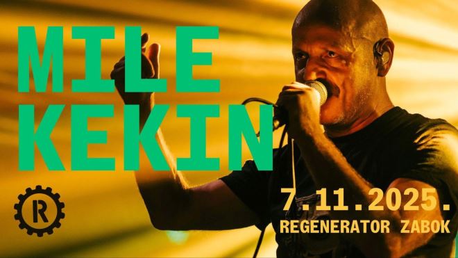 Jedan od najkarizmatičnijih i najoriginalnijih kantautora regionalne scene, Mile Kekin, nastupa 7. studenoga u klubu Regenerator u Zaboku. Publika ga već desetljećima pamti kao frontmena Hladnog piva, ali i kao autora koji je u svojoj solo karijeri dokazao da jednako snažno i uvjerljivo može stati sam pred publiku. U svojim pjesmama ostao je britak i žestok u društvenoj kritici, ali istovremeno duhovit i topao u storytellingu koji se dotiče svakodnevnog života, ljubavi i nesavršenosti svijeta oko nas.