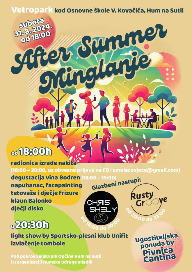 After summer minglanje u Humu na Sutli se vraća! I to u trećem, najraskošnijem izdanju dosad. U subotu, 31. kolovoza od 18 sati Humska udruga mladih priprema brojna događanja za sve uzraste u parku kod OŠ Viktora Kovačića.