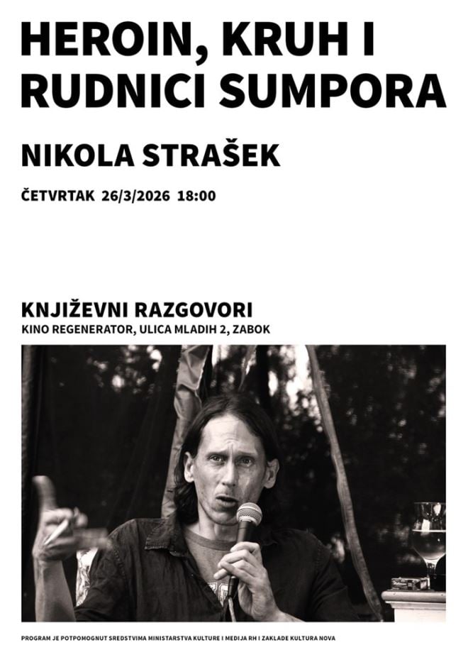 Nakon što nam je prije dvije godine predstavio svoje nagrađene pjesme, Nikola Strašek u Zabok se vraća s prvim i već naveliko hvaljenim romanom „Heroin, kruh i rudnici sumpora“.