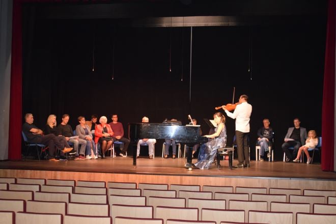 Na koncertu se okupio manji broj zaljubljenika u klasičnu glazbu koji su se, na poziv izvođača, i sami preselili na pozornicu te je tako koncert održan u jedinstvenoj intimnoj atmosferi. Dvadesetak posjetitelja je na pozornici svog lokalnog Doma kulture sa samo nekoliko metara udaljenosti uživalo u izvedbama glazbenika koji su nastupali u nekima od najpoznatijih svjetskih koncertnih dvorana poput Bečke državne opere, Carnegie Halla u New Yorku i Royal Albert Halla u Londonu. Vesna Podrug Kossjanenko je prodekanica Glazbenog odjela na Umjetničkoj akademiji u Splitu, dok je Wladimir Kossjanenko predstojnik tamošnjeg Odsjeka za gudačke instrumente i gitaru. Njihove biografije i profesionalne kvalitete jednostavno fasciniraju.