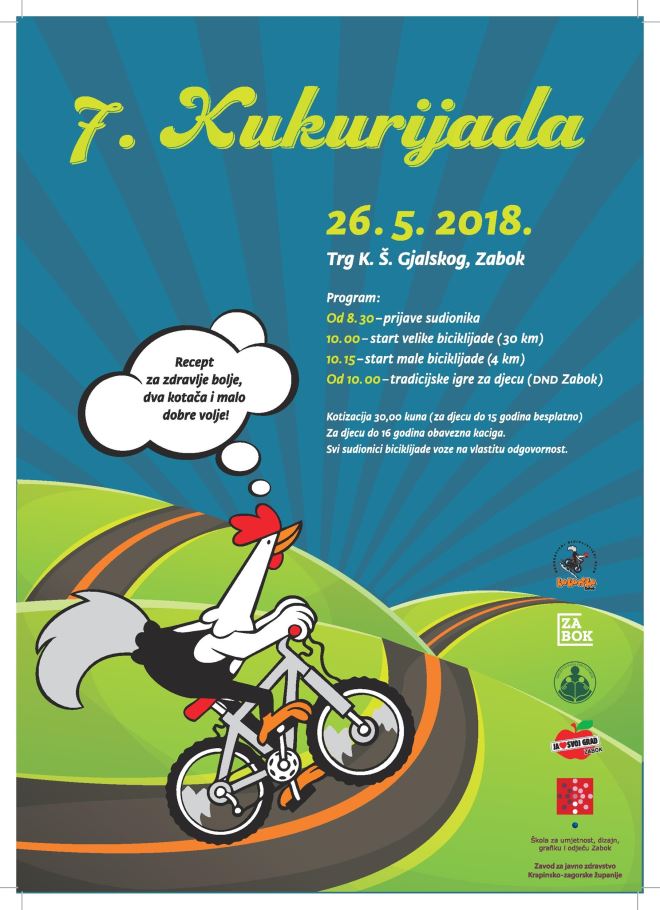Biciklijada pod nazivom 7. Zabočka Kukurijada rekreativnog je karaktera i prilagođena biciklistima svih uzrasta pa i ove godine postoje dvije rute – velika, malo zahtjevnija u duljini od 30 km te mala od 4,5 km prilagođena djeci. Prijave počinju u 8.30 sati na Trgu K.Š. Gjalskog u Zaboku, a start biciklijade je u 10 sati nakon čega slijede tradicijske igre za djecu u organizaciji Društva Naša djeca Zabok. Kotizacija za biciklijadu je 30,00 kuna, za djecu do 15 godina sudjelovanje je besplatno, a za sve sudionike osigurane su majice, poklon bonovi Hervisa te okrjepa na stazi i na cilju. Za djecu do 16 godina obavezne su kacige. Osnovni cilj ove tradicionalne biciklijade koja se organizira u okviru projekta Zdravi grad - Zabok je potaknuti svijest o važnosti kretanja i zdravog načina života.