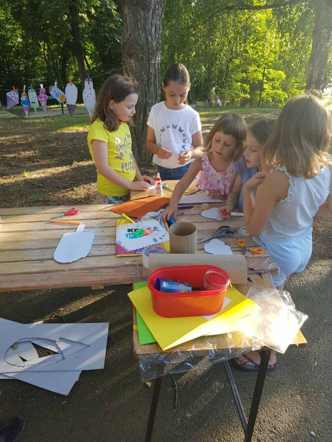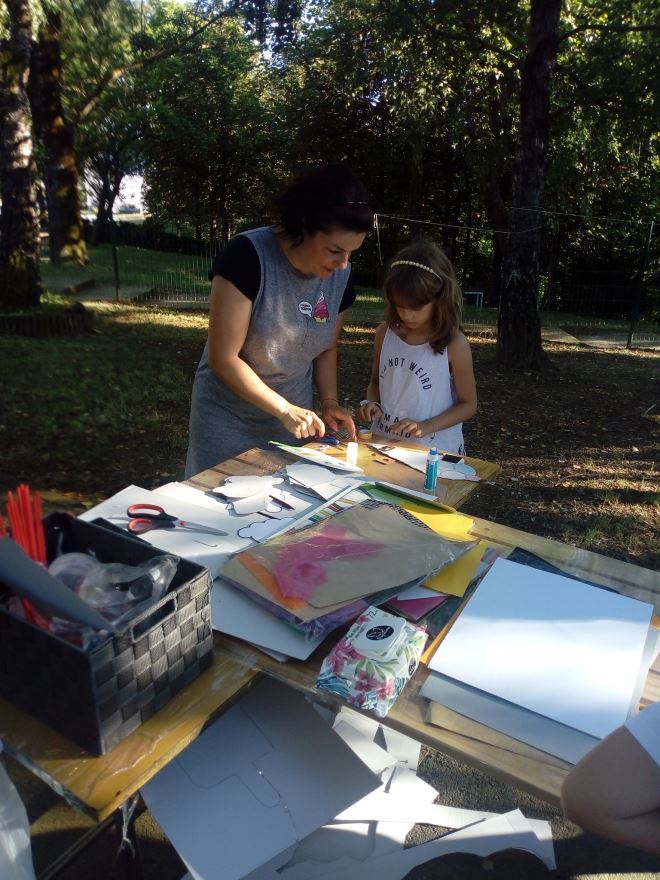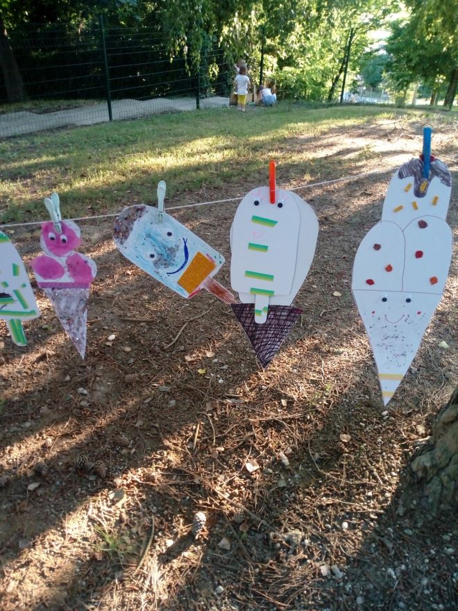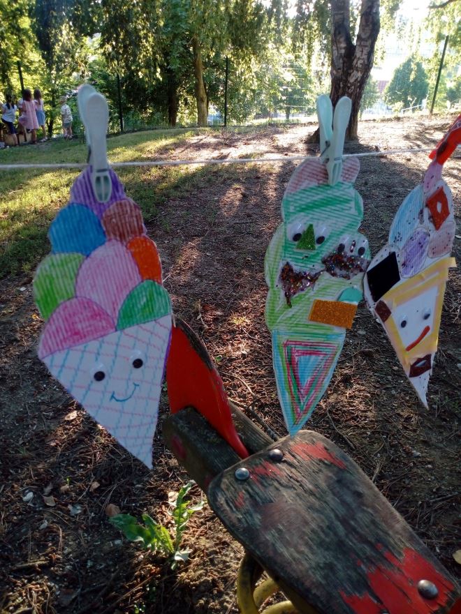 Inače, kako je vrijeme omiljene ljetne poslastice, sladoleda, na 1. ljetnoj radionici djeca su imala zadatak napraviti sladoled od kartona, izrezati ga i ukrasiti po želji. Naravno, svako dijete je izradilo zamišljeni sladoled a na kraju su se svi zasladili pravim ‘sladačem’. Od onih iz mašte pripremili su izložbu za roditelje. Tako su proveli skoro dva sata u kreativnoj aktivnosti na zraku u parku! Dvadesetak djece slijedilo je upute voditeljice Ivane, uživalo u igri škarama i bojama. Vesele se idućoj radionici. Radionice se inače održavaju srijedom i subotom.