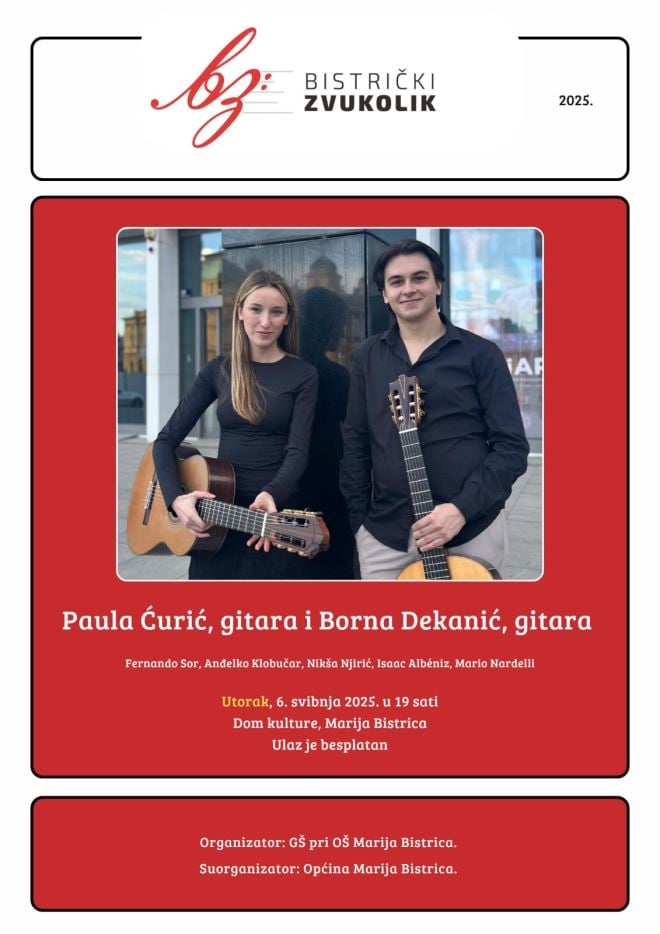 Ulaz na sve koncerte je besplatan, organizator je prof. Robert Međugorac iz Glazbene škole pri OŠ Marija Bistrica, a pokrovitelj Općina Marija Bistrica.