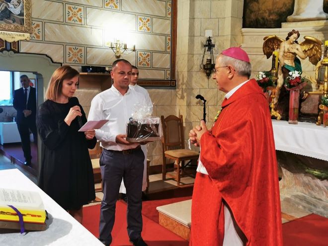 Na kraju slavlja domaći župnik Marijan zahvaljuje vjeroučiteljima Kseniji Miškulin i Danijelu Cvetku koji su se na poseban način brinuli za vaš duhovni rast i pripremu za današnji dan. U ime roditelja ovogodišnjih krizmanika djelitelju su uz prigodne riječi zahvale i poklon uručili supružnici Sente, a župniku na dobroti, strpljivosti i ustrajnosti Dijana Lovinčić Crnković.