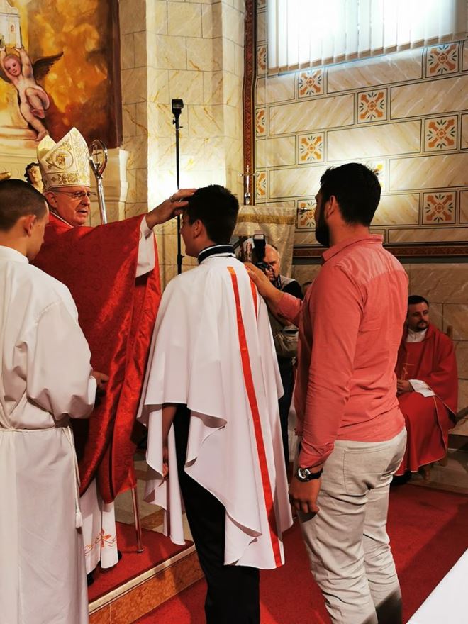 Na početku misnoga slavlja biskupa je pozdravio krizmanik Matija Kovačević.