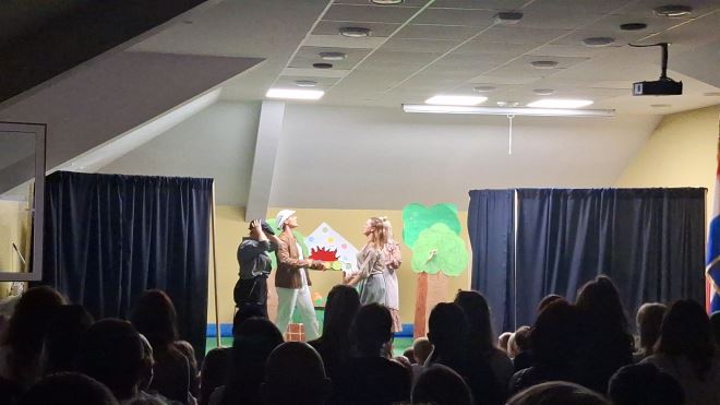 Na malo drugačiji način odgojiteljice su nas upoznale s pričom o Ivici i Marici (adaptiran tekst autorice Marijane Matoković) gdje je glavna nit vodilja bila kako pomoći roditeljima. Kroz cijelu predstavu svojim rivalstvom i raznoraznim smiješnim dosjetkama bratsko sestrinska ljubav nas je nasmijala te su nam zorno prikazali kako se još od davnina i dan danas nameće pitanje tko je stariji, tko jači, tko više voli roditelje i koga više vole roditelji,…