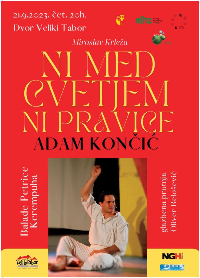 U četvrtak, 21. rujna 2023., s početkom u 20 sati u atriju Dvora Veliki Tabor bit će održana predstava Ni med cvetjem ni pravice (Balade Petrice Kerempuha) koju izvodi Adam Končić uz glazbenu pratnju Olivera Beloševića.