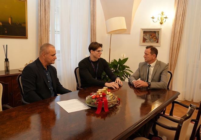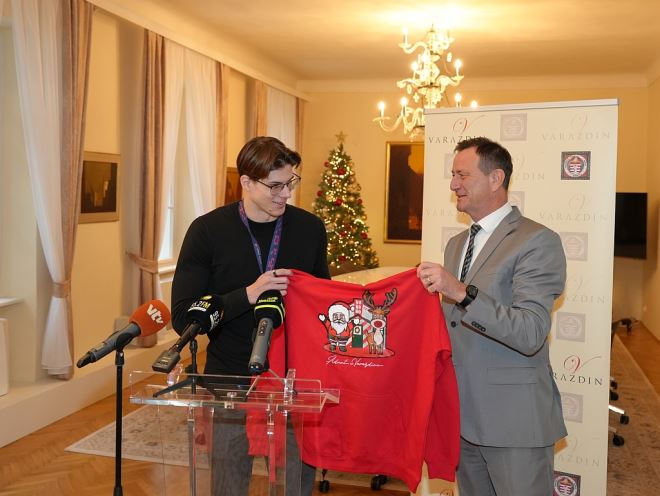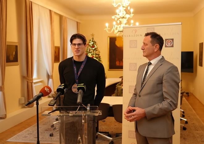 U Gradskoj vijećnici, gradonačelnik Grada Varaždina Neven Bosilj priredio je u utorak, 23. prosinca 2025. primanje za sjajnog varaždinskog plivača Luku Cvetka koji je kao član hrvatske reprezentacije, štafete 4x50 metara osvojio brončanu medalju na Europskom prvenstvu.