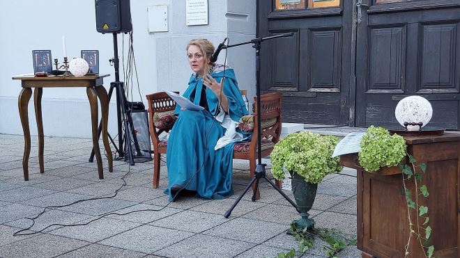 Ulomke iz romana „Jadranka“, najčitanije hrvatske autorice Marije Jurić Zagorke, čitala je Vesna Barilar iz Centra za ženske studije, koja je dala i analizu posebno se osvrnuvši na složenu ljubavnu priču protagonista, prepunu obrata, političkih spletki i urota, prilike te položaj žena u vrijeme Bachova apsolutizma u Hrvatskoj, razdoblju u kojem se radnja odvija. Kao sjećanje na program, posjetitelji, odnosno posjetiteljice koje su prevladavale u publici, dobile su lepezu s tekstom iz Jadranke, koju je osmislila dizajnerica Jadranka Hlupić Dujmušić iz Zagreba.