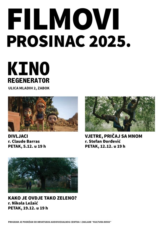 Prosinac otvaraju poučnim animiranim filmom 'Divljaci' koji će gledatelje na najbolji način uvesti u blagdansku sezonu. Nastavlja se s filmom 'Vjetre, pričaj sa mnom' redatelja Stefana Đorđevića koji se profilirao kao najznačajnije filmsko ostvarenje posljednjih godina u regiji.